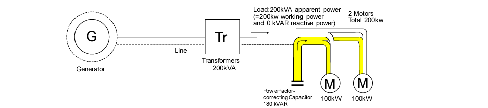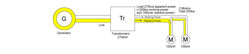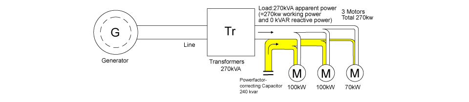 Assuming the power supply capacity remains unchanged at 270 kVA, if a 240 kVAR parallel capacitor is installed, the load can be increased to three motors totaling 270 kW.