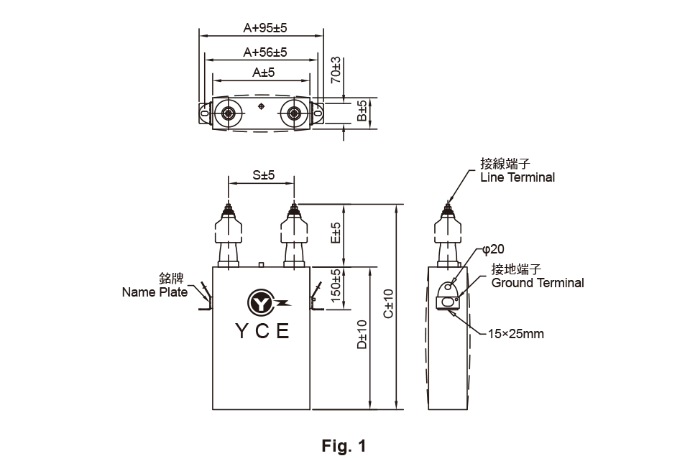 With built-in discharge resistor, residual voltage drops to lower than 50V after capacitor is disconnected from power for 5 minutes. |