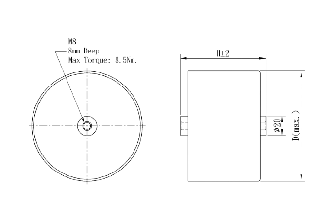 M8 female thread terminals of tinned brass, maximum torque 8.5Nm.
